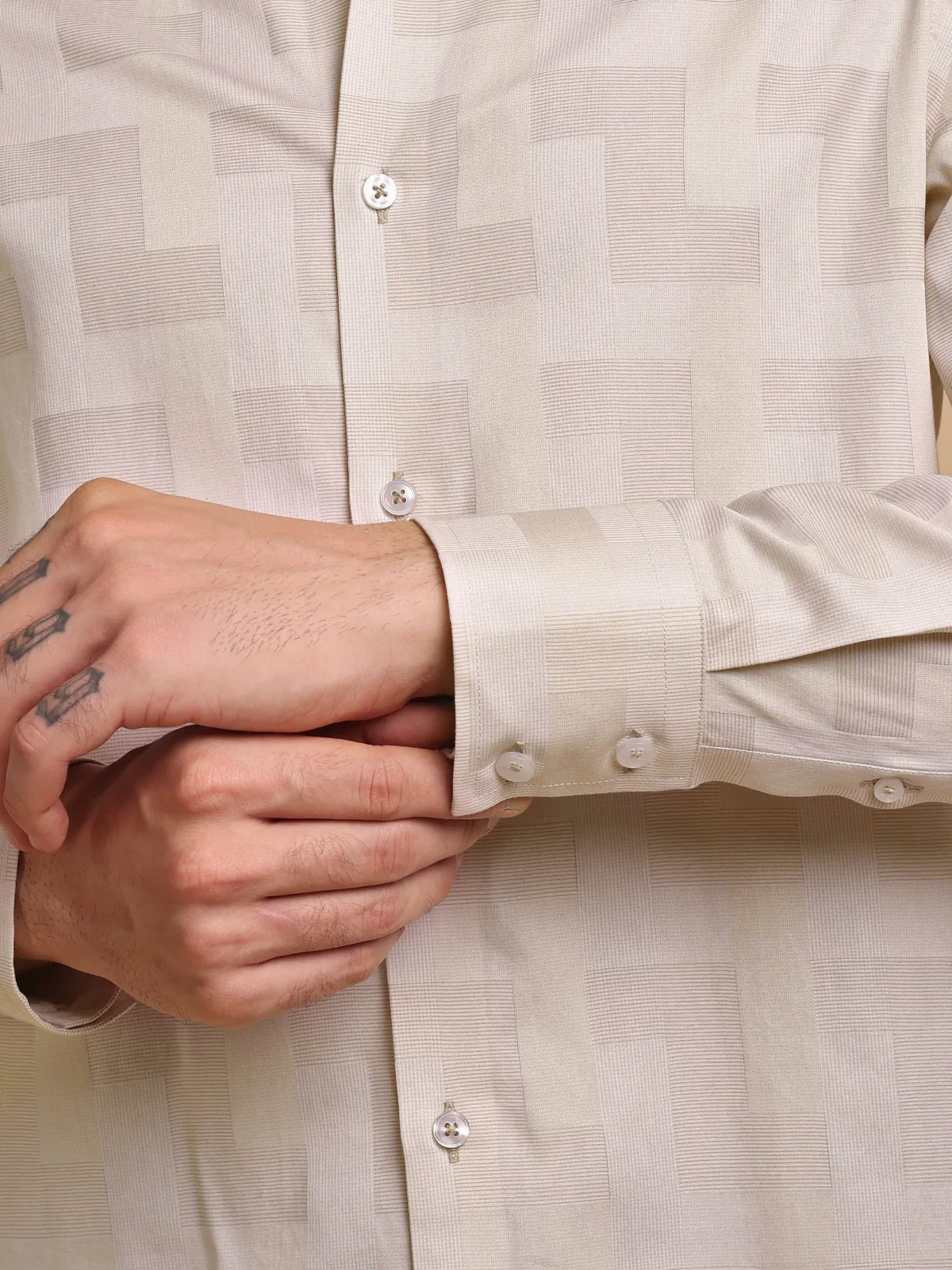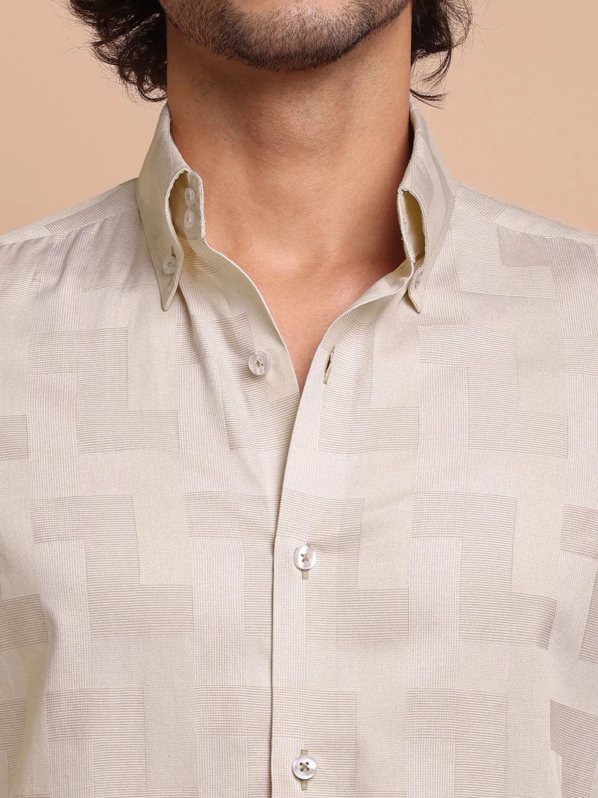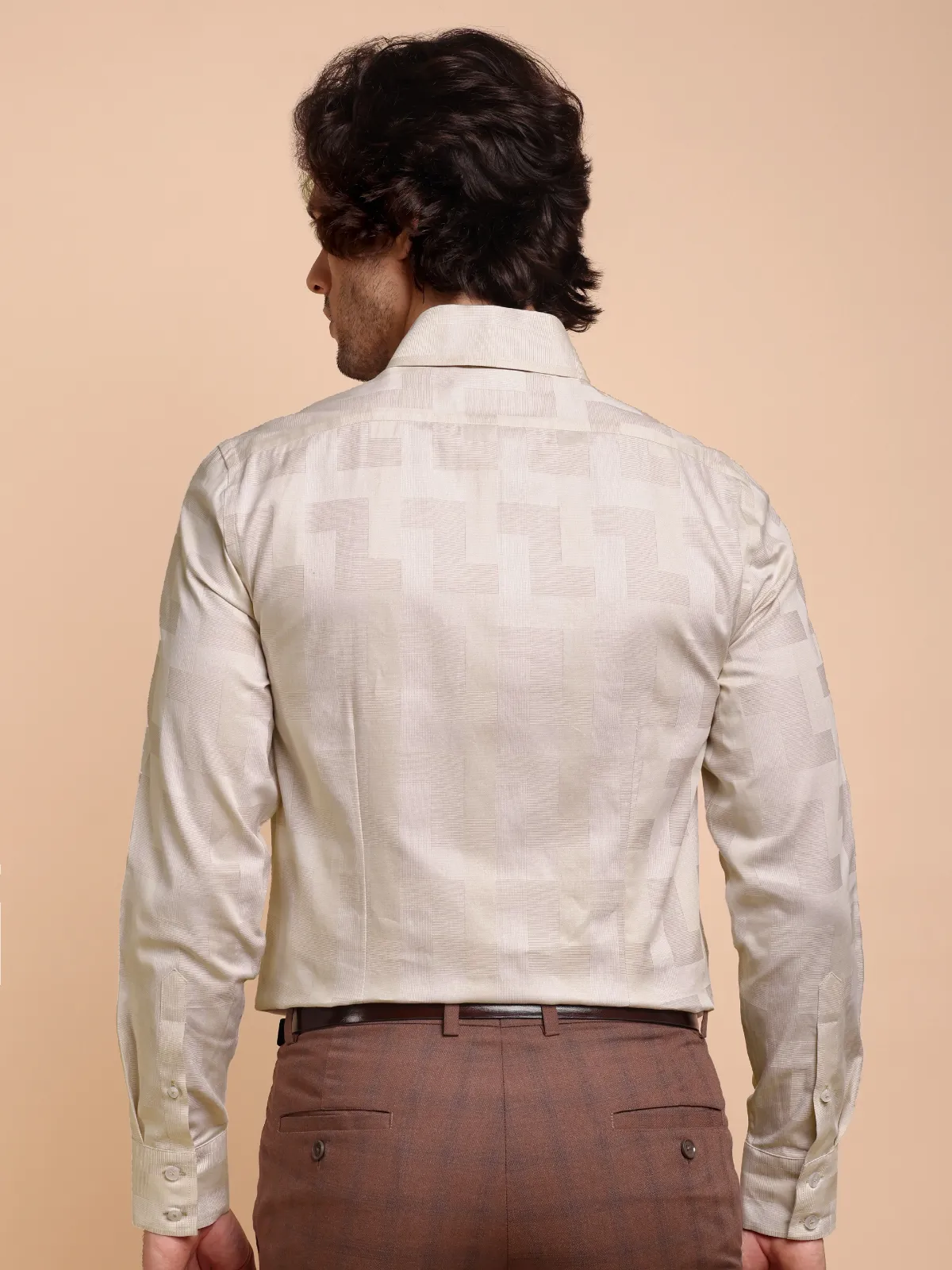Brushed Gold Pure Cotton Shirt with Unique Self Pattern