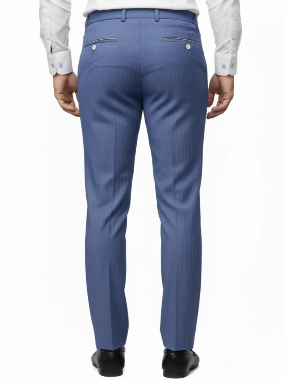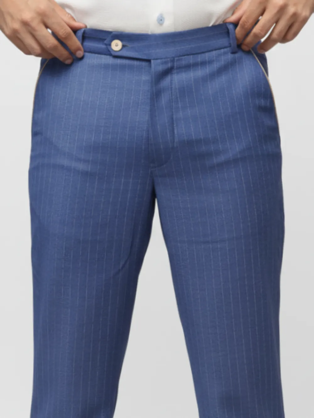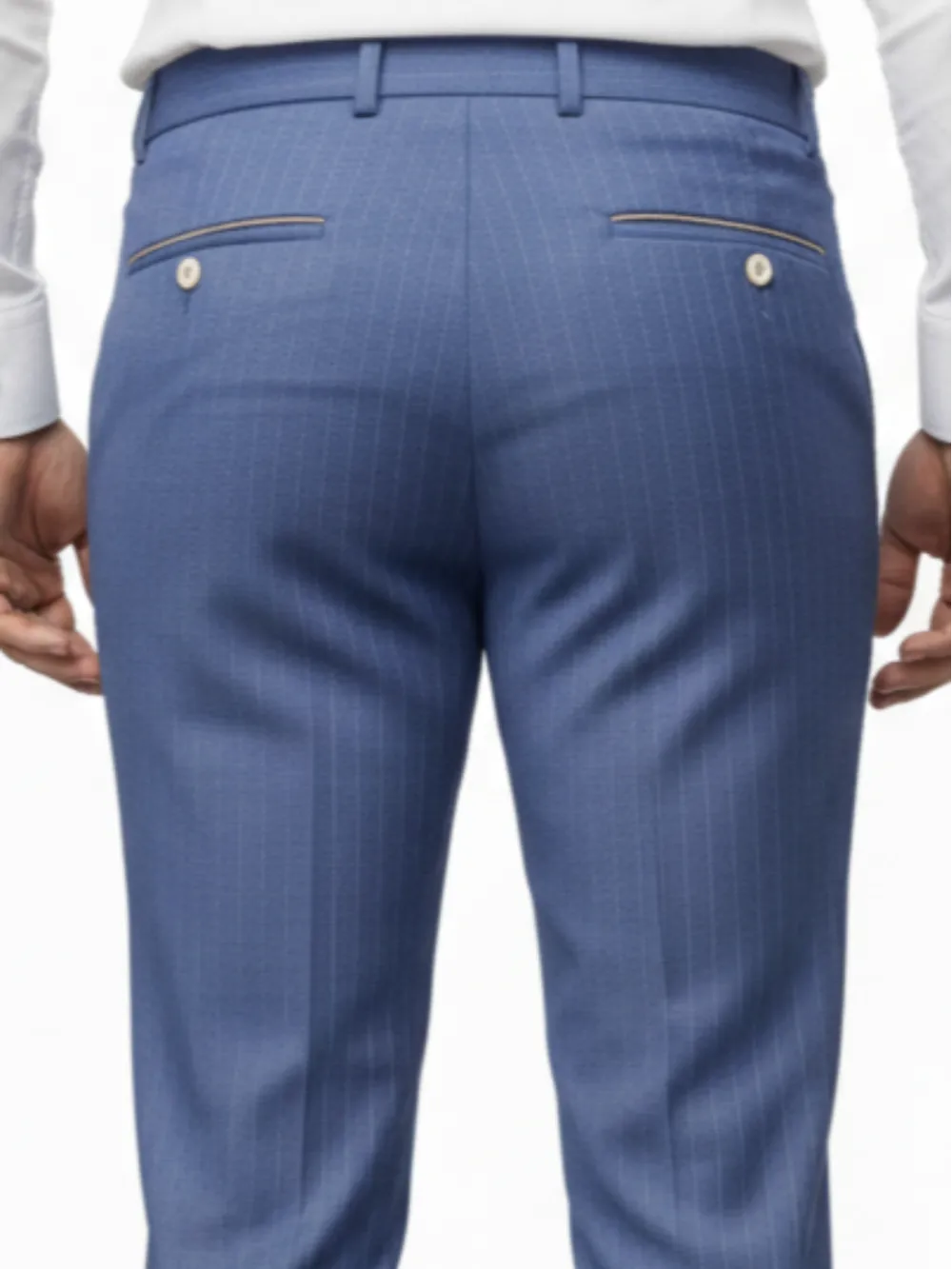 Elevate your wardrobe with these Blue Line Cotton Trousers, designed for the modern gentleman. Tailored from premium cotton, they feature subtle pinstripes and light brown detailing along the front and back pockets, adding a touch of sophistication to a timeless silhouette. Perfect for both work and leisure, these trousers blend comfort, craftsmanship, and understated luxury.