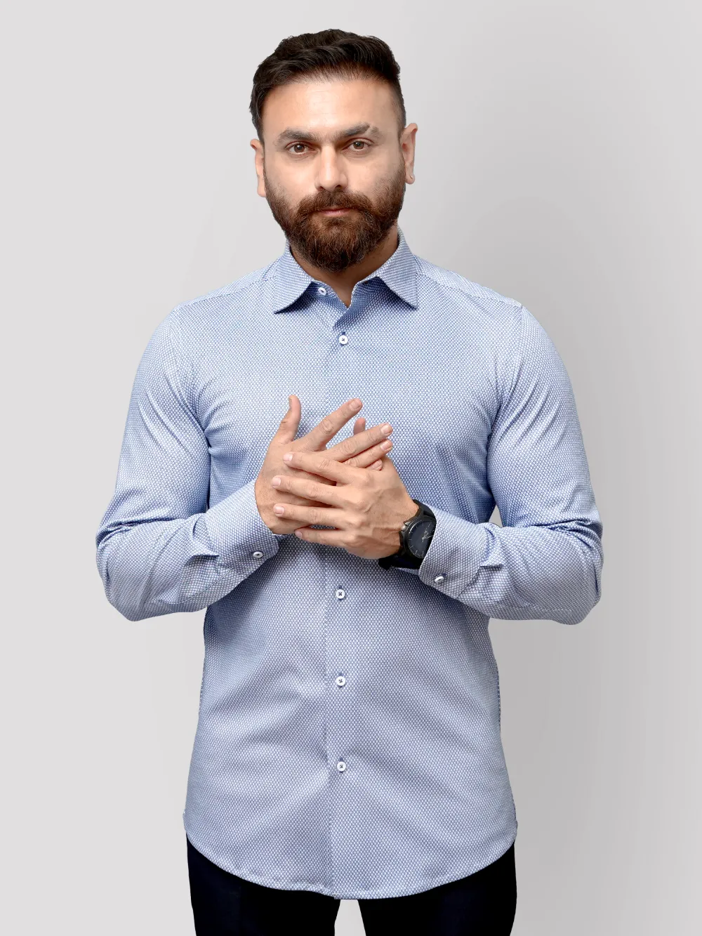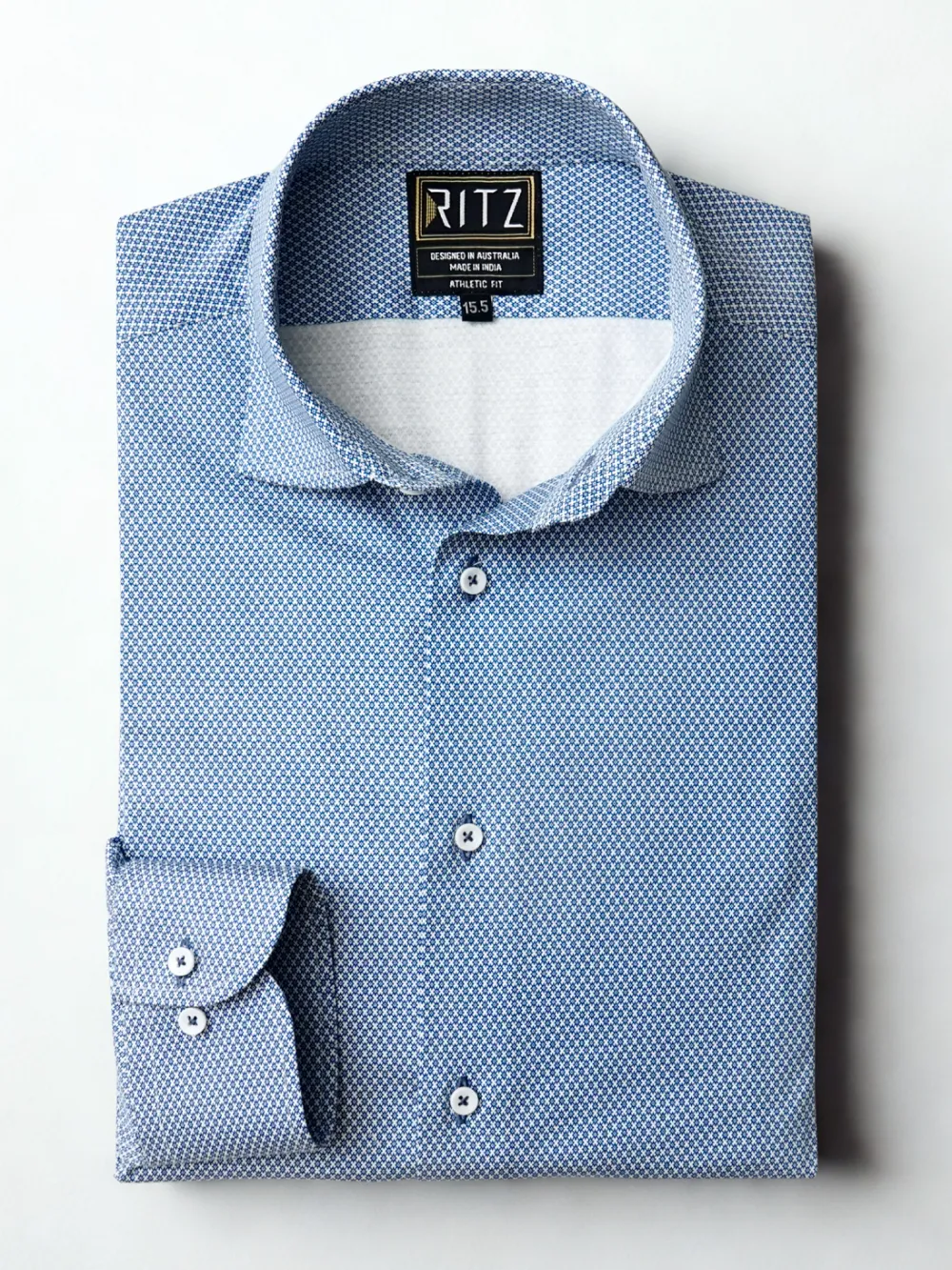 Non-Iron Stretch Blue Mosaic Shirt – Knitted Weave