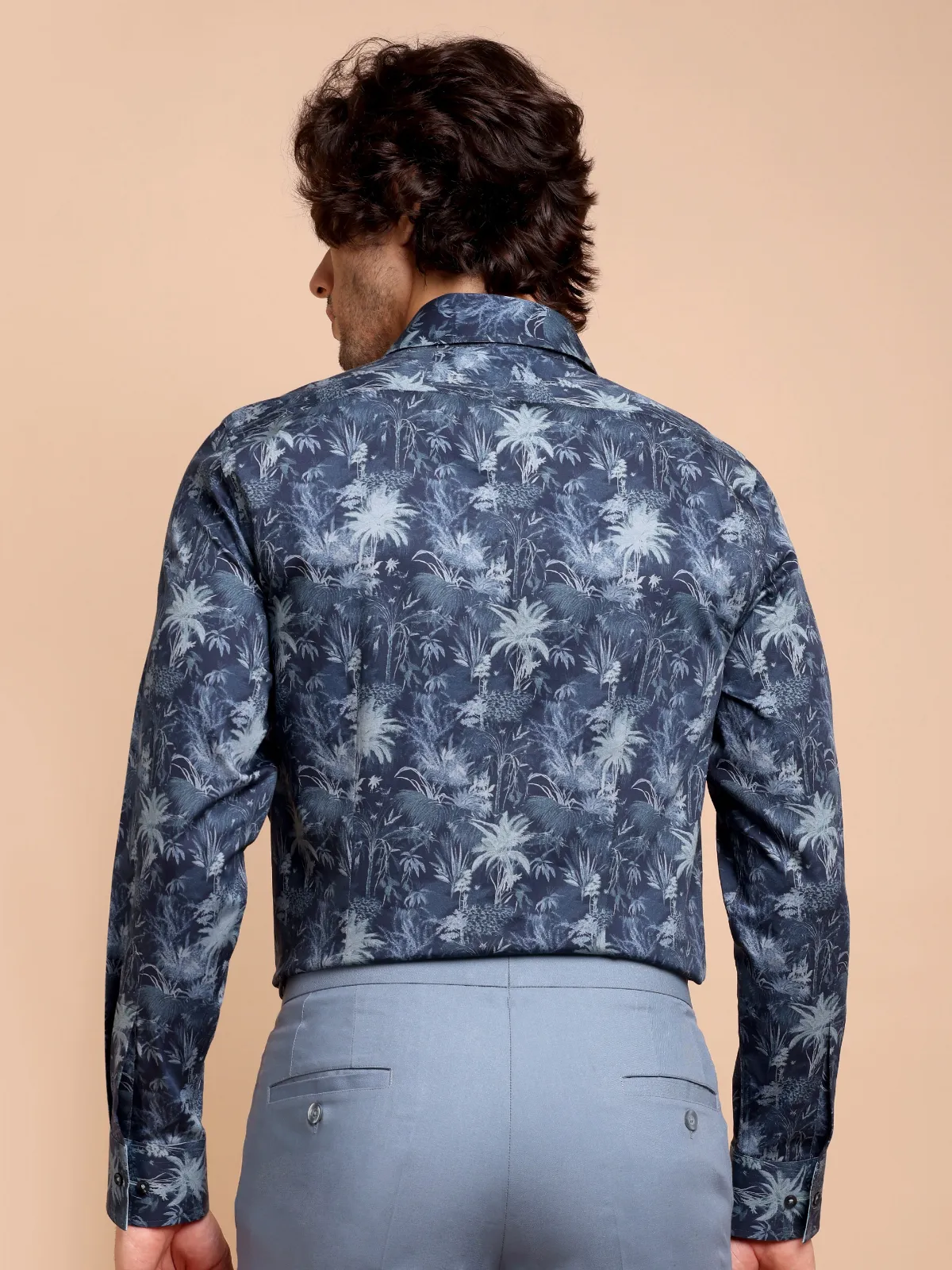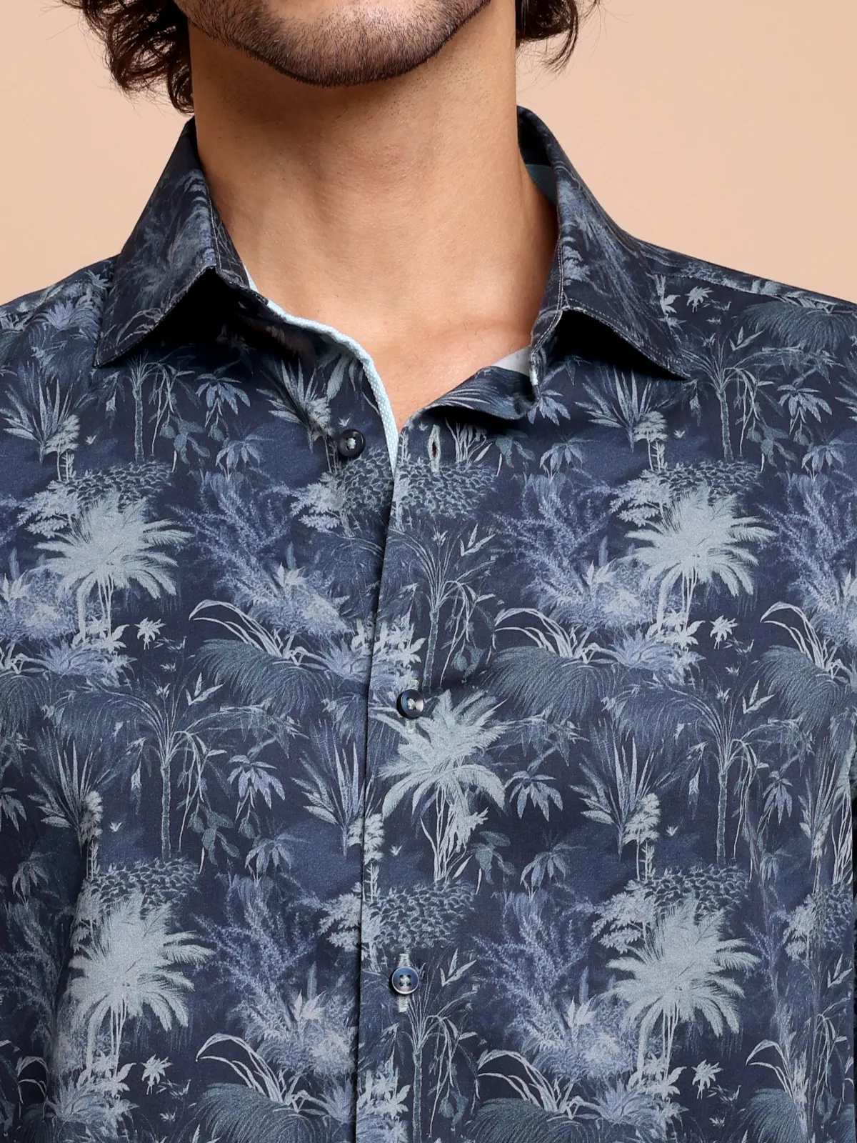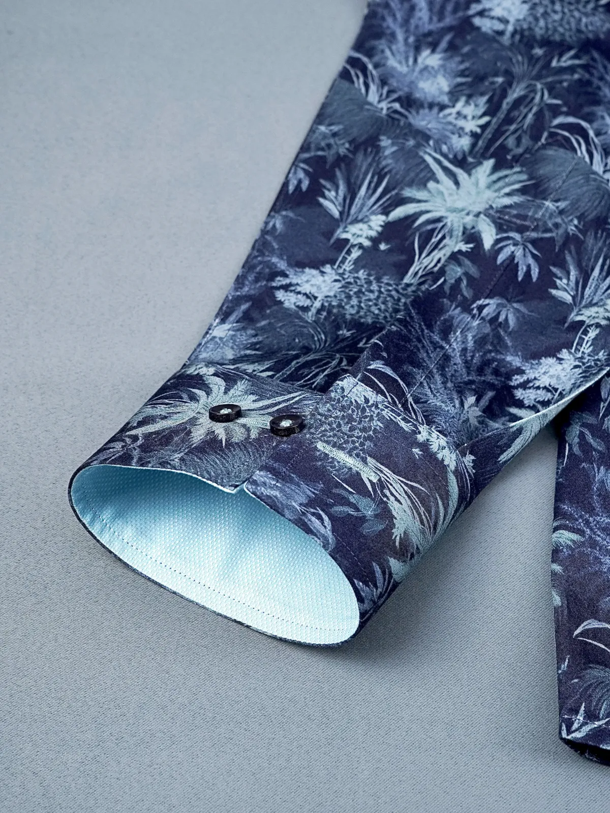 Pure Cotton Night Forest Print Indigo and Sky Shirt