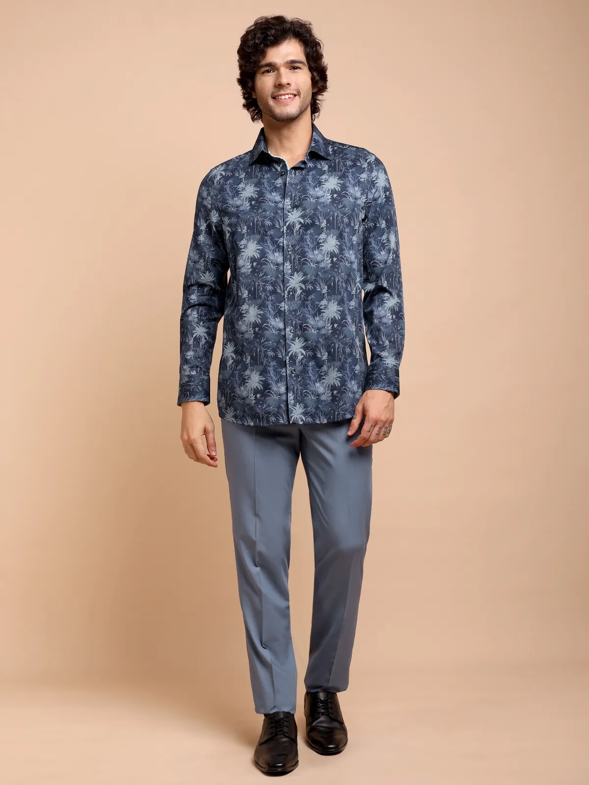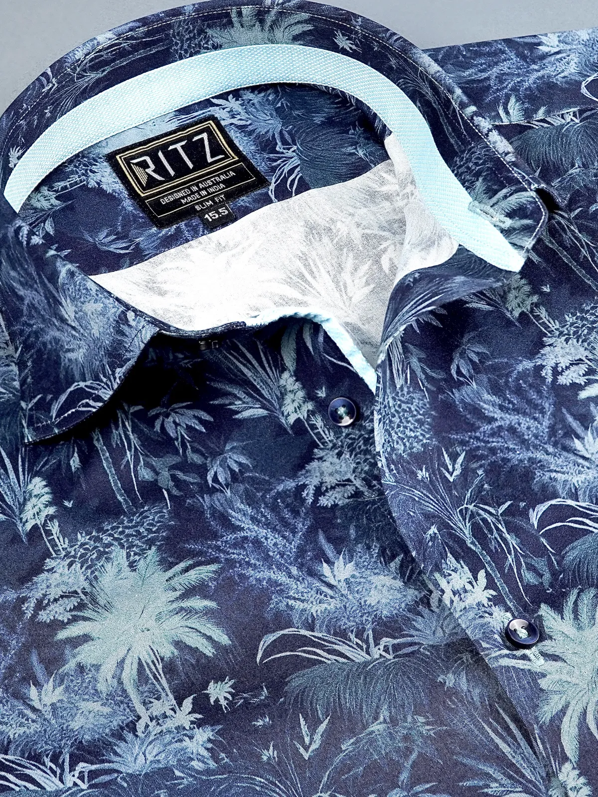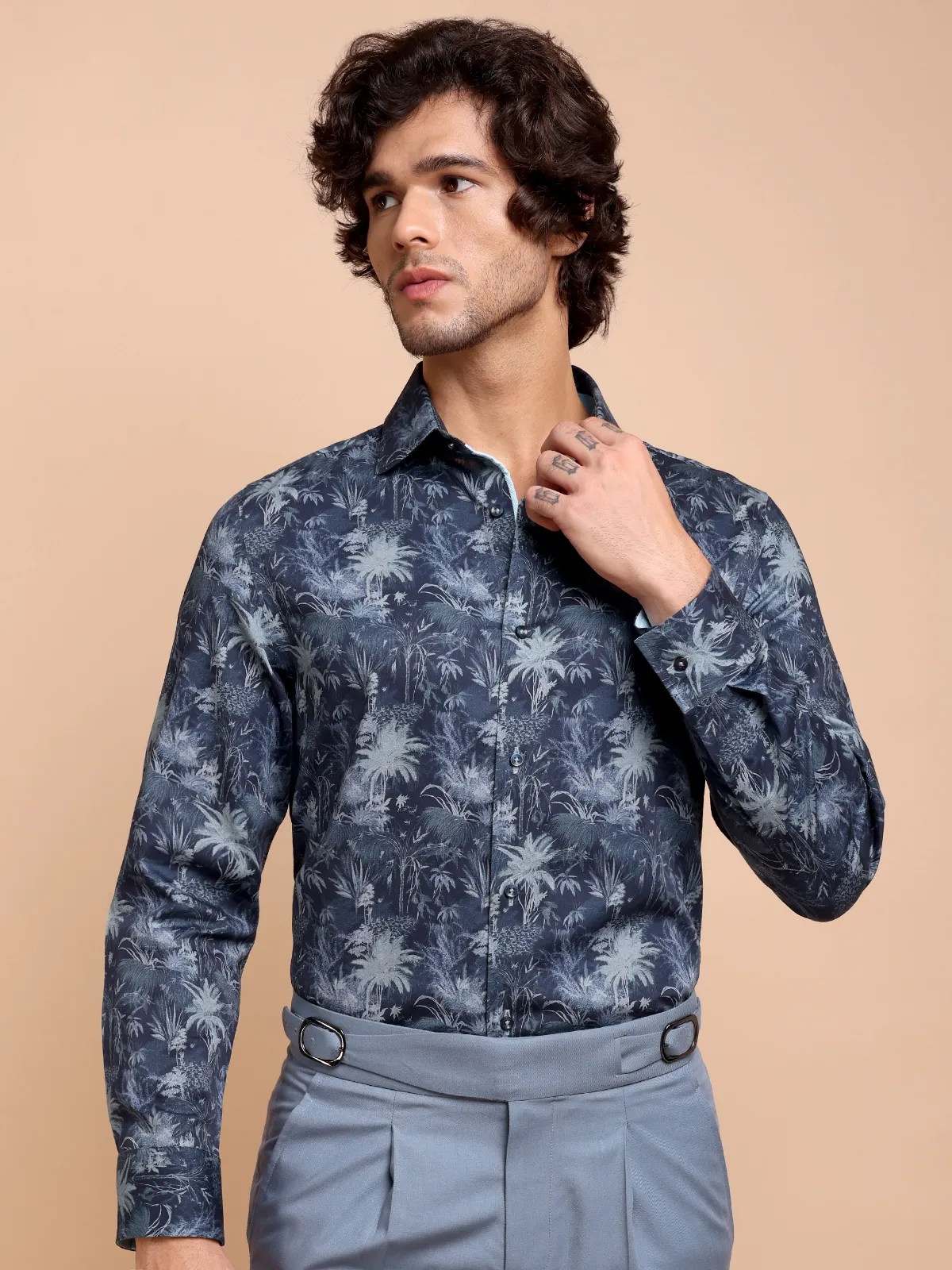 Pure Cotton Night Forest Print Indigo and Sky Shirt